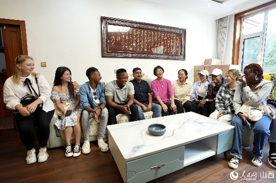 圖為選手與皇城村村民交流。人民網(wǎng) 盧鵬宇攝