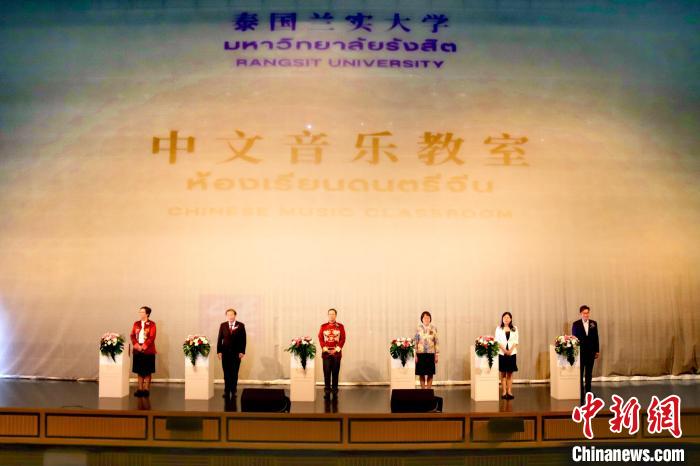泰國蘭實大學與中外語言交流合作中心合作設立的泰國首家“中文音樂教室”19日舉行揭牌典禮。趙婧楠 攝