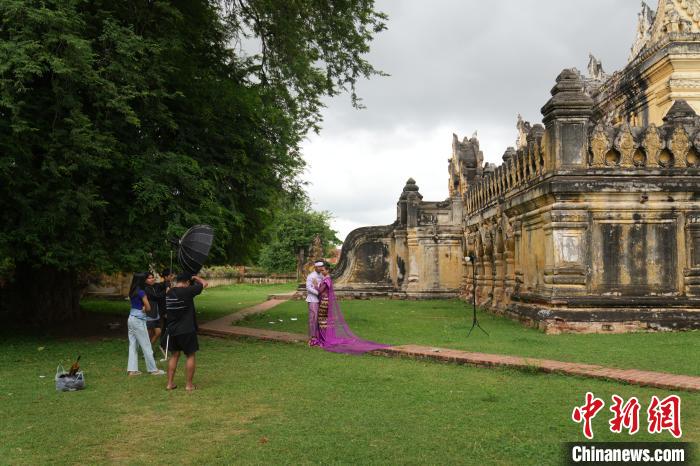 9月30日,緬甸曼德勒,一對(duì)新人在因瓦古城遺址拍攝婚紗照?!≈行律缬浾?劉冉陽(yáng) 攝