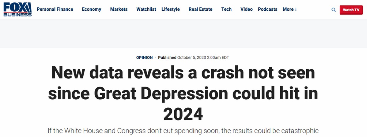 報(bào)道中寫道,越來(lái)越多的數(shù)據(jù)表明,一場(chǎng)破壞性超過(guò)大蕭條的經(jīng)濟(jì)崩盤可能即將在2024年降臨美國(guó)。白宮和國(guó)會(huì)如果不盡快削減政府支出,結(jié)果可能是災(zāi)難性的。