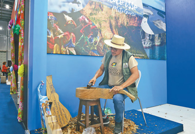 來(lái)自巴西里約州帕拉蒂市的多種口味甘蔗酒,現(xiàn)場(chǎng)制作的馬托格羅索州特色中提琴(見(jiàn)圖,本報(bào)記者時(shí)元皓攝),帕拉伊巴州的舞者身著傳統(tǒng)服飾翩翩起舞……近日,在里約會(huì)展中心舉行的第五十屆巴西旅行社協(xié)會(huì)博覽會(huì)上,來(lái)自巴西多個(gè)州、市的文旅部門和旅行社展示了豐富的特色商品和地方民俗文化,吸引大批參觀者駐足體驗(yàn)。