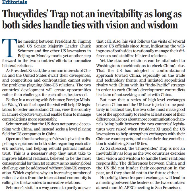 原文標(biāo)題:Thucydides’ Trap not an inevitability as long as both sides handle ties with vision and wisdom