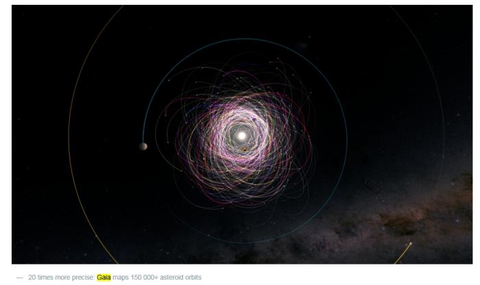 “蓋亞”團(tuán)隊(duì)繪制出的150000多顆小行星的軌道。圖片來源:歐洲航天局官網(wǎng)