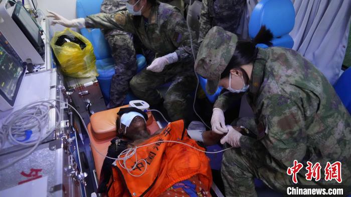10月9日22時(shí)許,中國(guó)南沙永暑礁醫(yī)院順利完成一名受傷越南漁民的毀損性骨折手術(shù),成功對(duì)其實(shí)施救治。圖為醫(yī)務(wù)人員在救護(hù)車內(nèi)進(jìn)行緊急救治?! ×皱\堂 攝