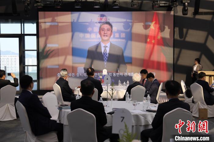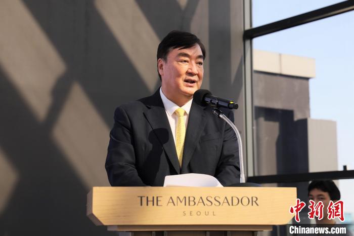 圖為中國駐韓國大使邢海明致辭。中新社發(fā) 中國駐韓國大使館 供圖