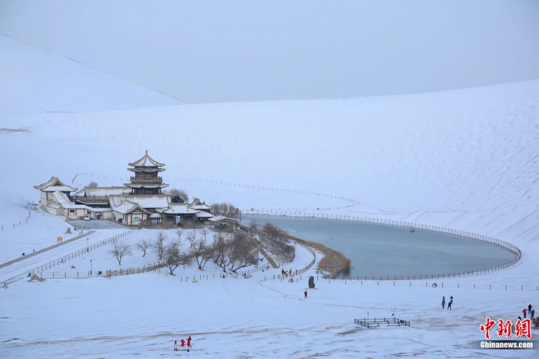 敦煌鳴沙山月牙泉雪景如畫。張曉亮 攝