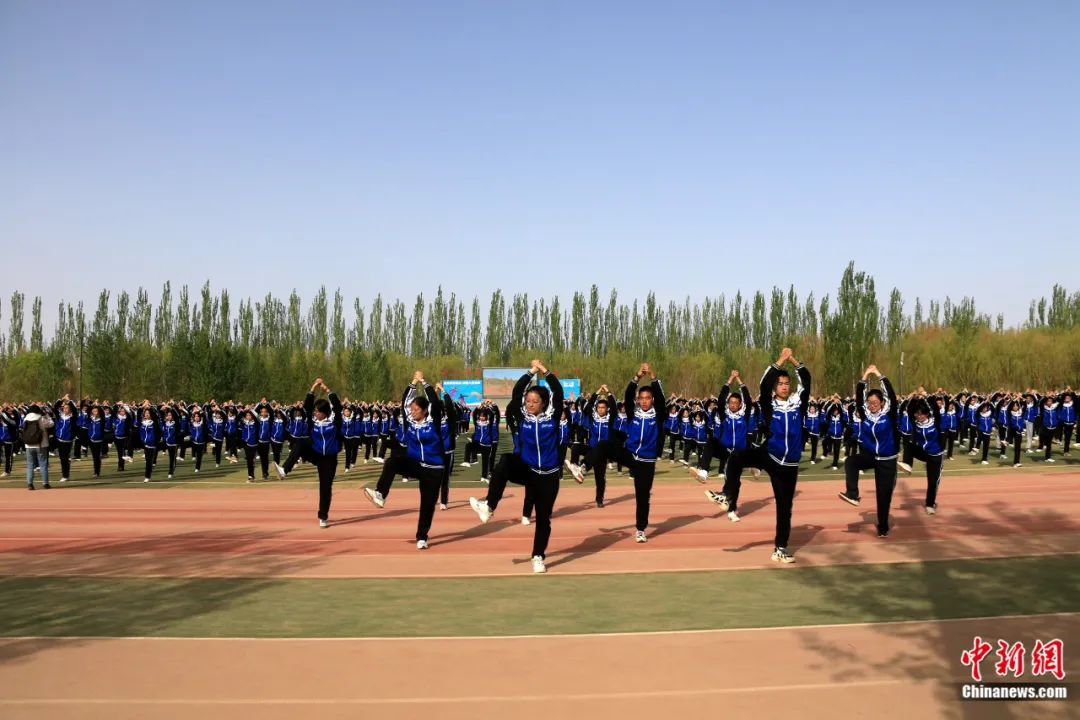 敦煌中學學生在操場做敦煌舞課間操。張曉亮 攝