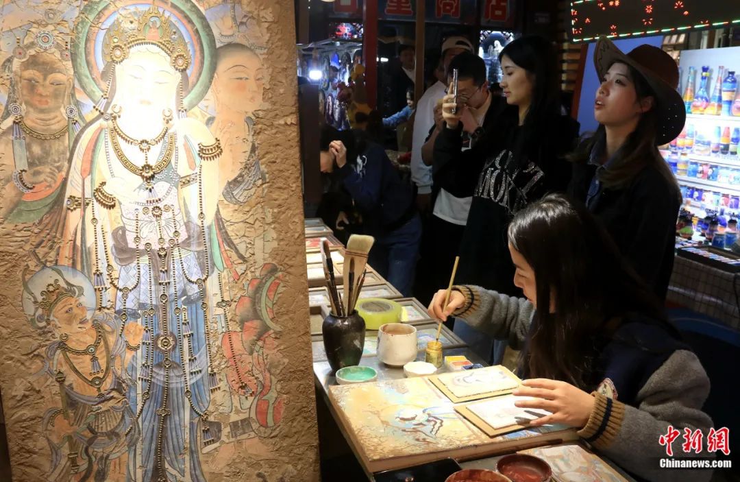 游客在敦煌夜市選購泥板畫。張曉亮 攝