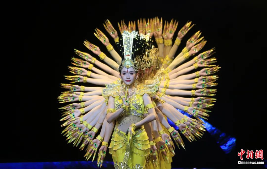 敦煌大劇院,演員在大型情景音畫劇《千手千眼》中表演。張曉亮 攝