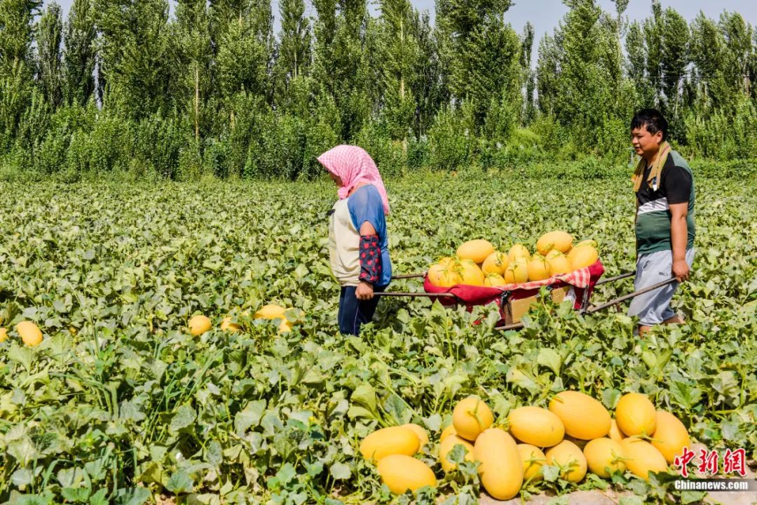 敦煌市黃渠鎮(zhèn)農(nóng)民采摘哈密瓜。王斌銀 攝