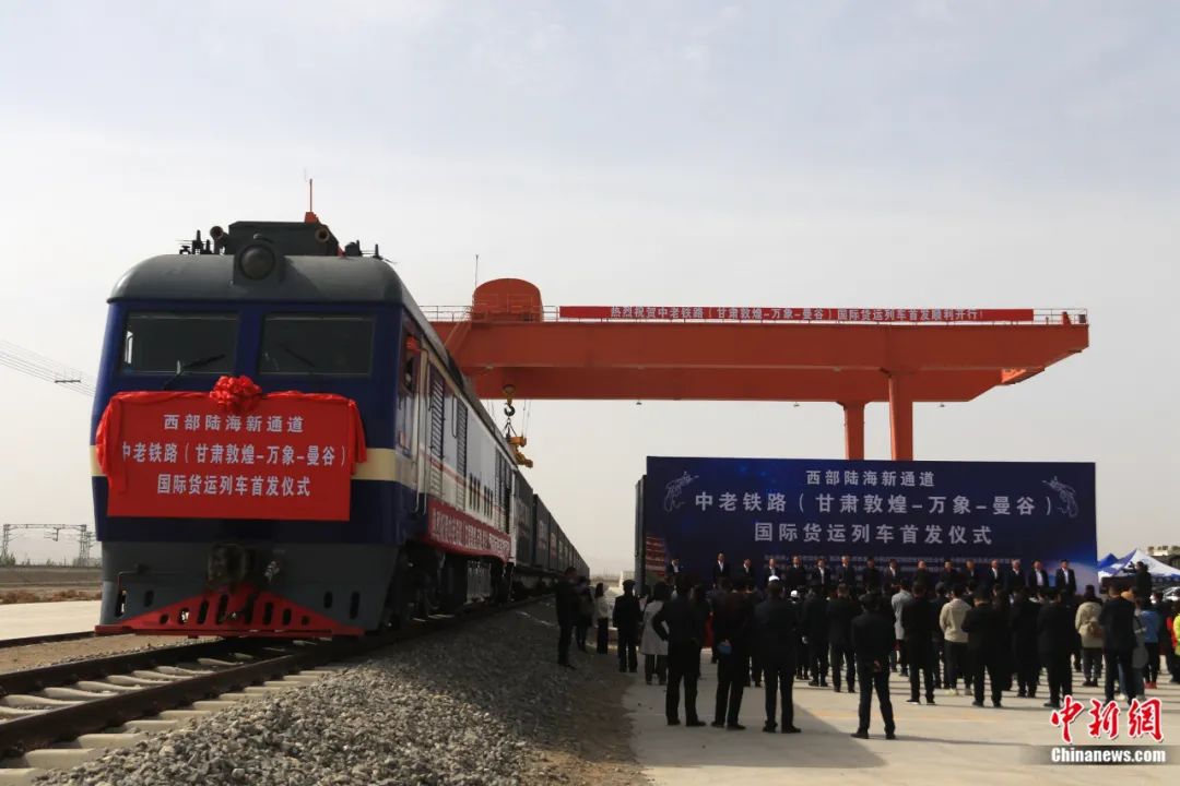 首趟西部陸海新通道中老鐵路(甘肅敦煌-萬象-曼谷)國際貨運列車發(fā)運。張曉亮 攝