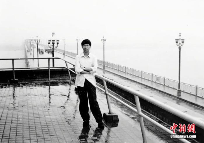 大學時期的徐浩良在南京長江大橋留影。受訪者供圖