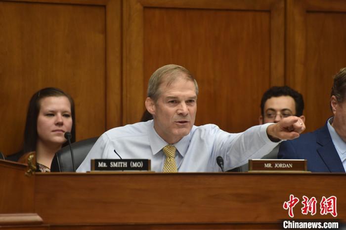 當(dāng)?shù)貢r(shí)間10月13日,美國(guó)國(guó)會(huì)眾議院共和黨人就議長(zhǎng)候選人再次進(jìn)行黨內(nèi)投票,眾議院司法委員會(huì)主席吉姆·喬丹獲得黨內(nèi)提名。圖為喬丹今年9月在眾議院監(jiān)督和問責(zé)委員會(huì)聽證會(huì)上發(fā)言。 中新社記者 沙晗汀 攝
