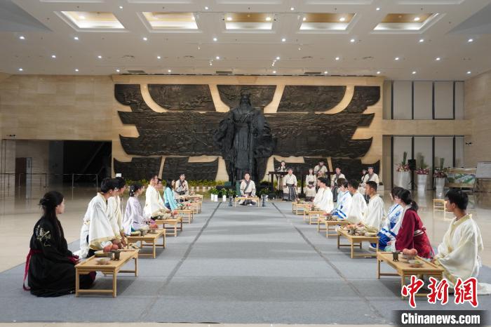 圖為研學團隊在鄭州商都遺址博物院體驗商周晚宴。(資料圖)韓章云攝
