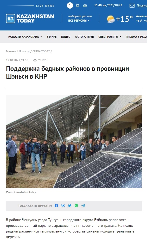 今日哈薩克斯坦通訊社報道2023“一帶一路”媒體合作論壇歐亞主流媒體考察團走進陜西渭南