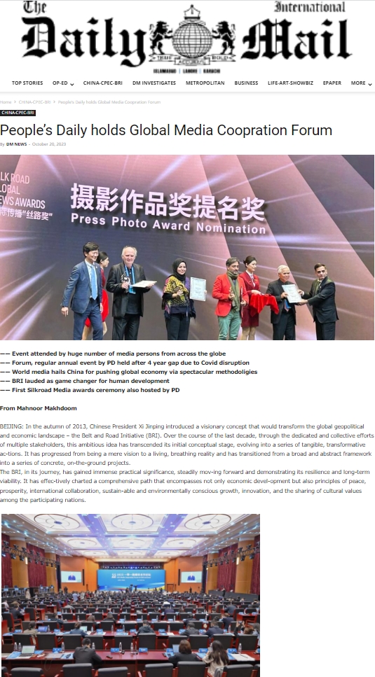 巴基斯坦《每日郵報(bào)》網(wǎng)站報(bào)道2023“一帶一路”媒體合作論壇及首屆國際傳播“絲路獎”頒獎活動