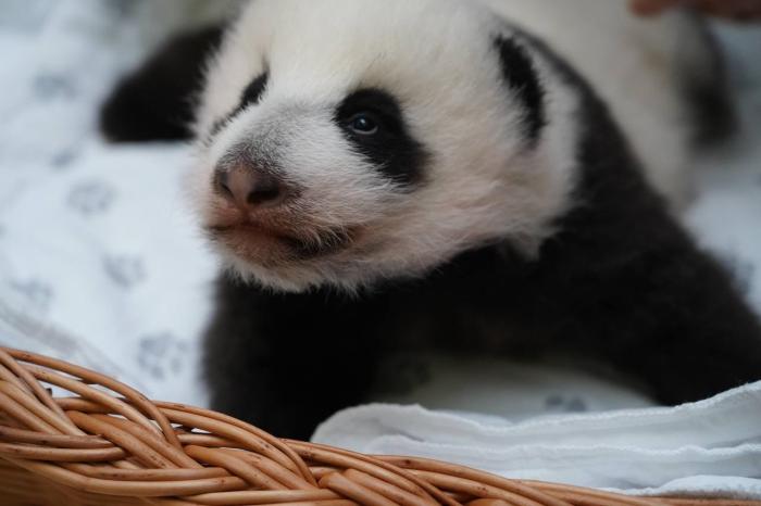 園方10月6日發(fā)文稱,熊貓幼崽在出生后第42天睜開了眼睛,開始對光線有所反應(yīng),但要到兩個月左右時才能開始看見東西。