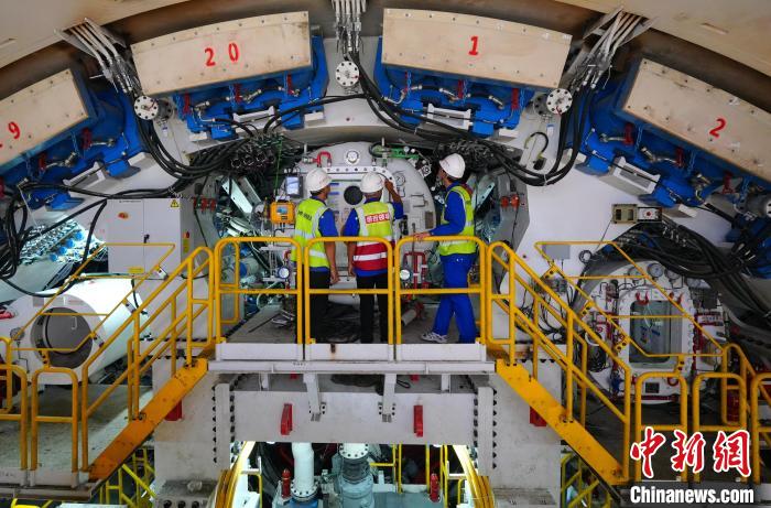 面對項(xiàng)目建設(shè)重難點(diǎn),項(xiàng)目團(tuán)隊(duì)在刀盤結(jié)構(gòu)、刀具類型、驅(qū)動密封、耐壓耐腐蝕等方面進(jìn)行了針對性研究與設(shè)計(jì),量身打造了“英雄號”盾構(gòu)機(jī),盾構(gòu)機(jī)總長134米,重約3700噸,采用了刀盤液壓磨損檢測裝置等多項(xiàng)創(chuàng)新技術(shù)。