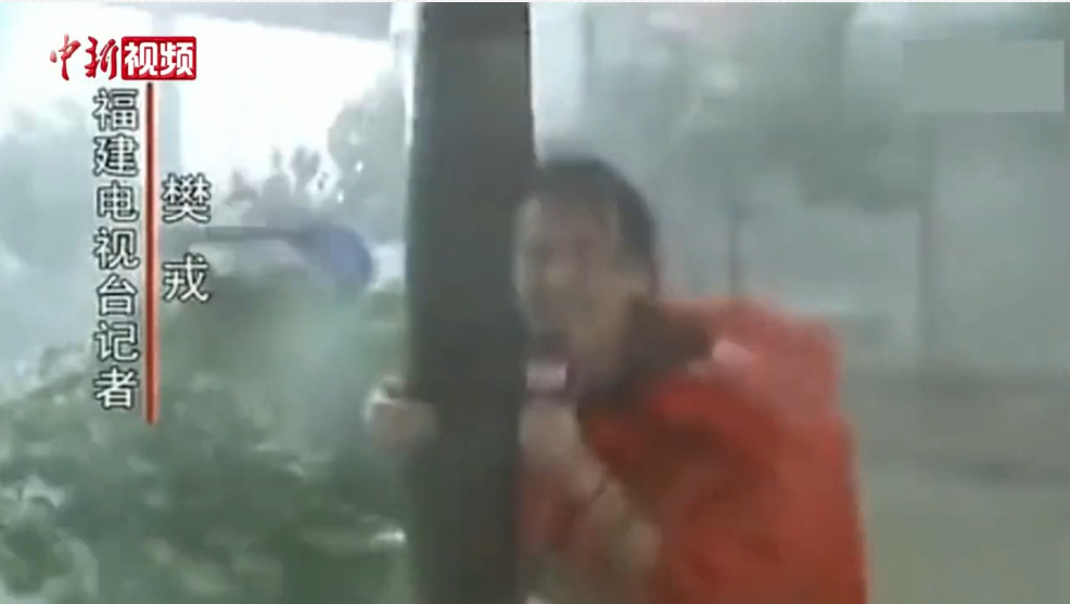 臺風(fēng)暴雨來襲,他們身體力行,播報臺風(fēng)的威力。