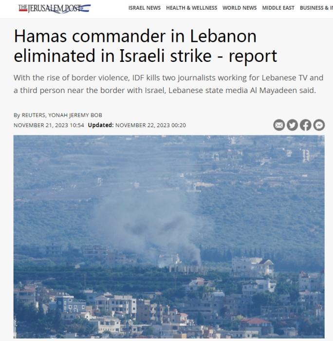 中新網(wǎng)11月23日電 據(jù)以色列《耶路撒冷郵報》報道,當(dāng)?shù)貢r間21日,在以色列對黎巴嫩進(jìn)行的空襲中,哈馬斯“卡桑旅”黎巴嫩分支副指揮官卡拉茲被炸身亡。