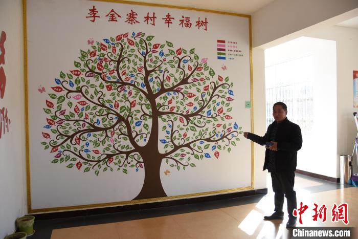 李金寨村黨支部宣傳委員李發(fā)志介紹“幸福樹(shù)”。 王宇 攝