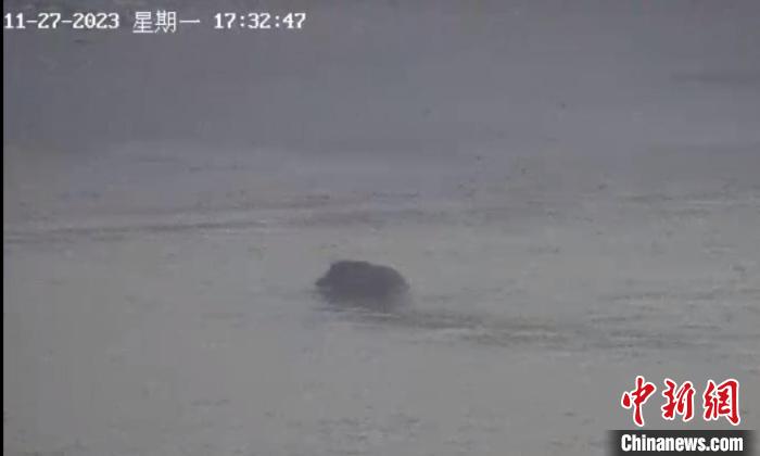 27日傍晚,南京海事局交管中心值班人員在通過(guò)長(zhǎng)江三橋上的攝像頭例行巡查時(shí),意外地發(fā)現(xiàn)江面上有一頭野豬在游泳。江蘇海事局 供圖