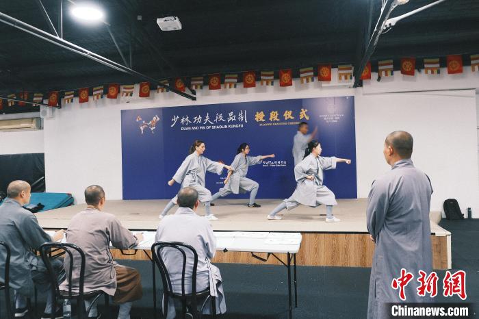 澳大利亞少林寺禪武堂釋延淀師傅向記者介紹說,少林功夫段品制分為段位、品階和榮譽(yù)品階,每個(gè)類別均有九級,旨在評價(jià)習(xí)練者的功夫水平。今天的活動(dòng)是在澳大利亞舉辦的少林考功大會(huì)的一部分。