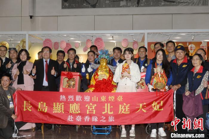 中新社臺北12月12日電 (記者 陳小愿)山東煙臺長島顯應宮宋代銅身媽祖“北庭天妃”12日抵達臺灣桃園機場,將前往新北、臺北等多個縣市的16個宮廟巡安、探親。
