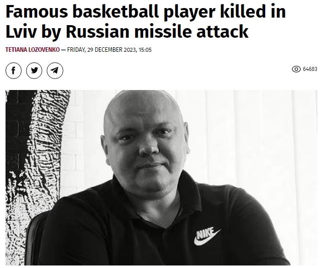據(jù)報(bào)道,當(dāng)天,尼庫(kù)林在社交媒體上寫道,“今天,在俄羅斯對(duì)我們城市發(fā)動(dòng)的導(dǎo)彈襲擊中,烏克蘭籃球運(yùn)動(dòng)員、教練、國(guó)際級(jí)運(yùn)動(dòng)健將維克多·科布齊斯蒂死亡”。