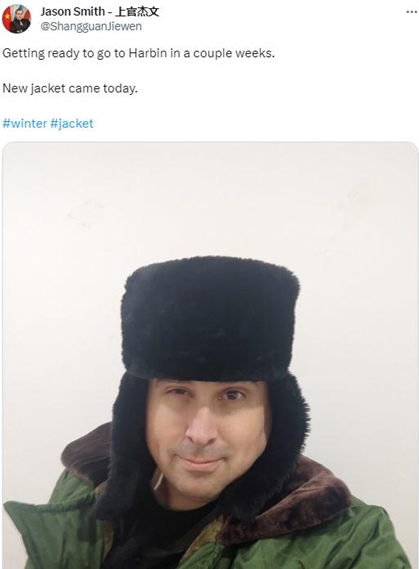 同樣對哈爾濱充滿興趣的還有美國人上官杰文。他近日在社交媒體上發(fā)布了一張自己頭戴帽子身穿大衣的照片,配文說,“準備幾周后去哈爾濱。新外套送來了?!?/p>