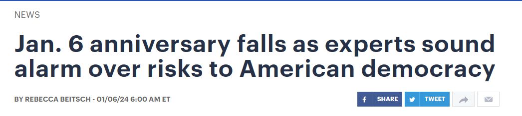 這項(xiàng)民調(diào)結(jié)果公布之時(shí),正值“國(guó)會(huì)山騷亂”事件三周年之際,美國(guó)也迎來(lái)新的選舉年?!秶?guó)會(huì)山報(bào)》網(wǎng)站在6日的報(bào)道中再次提到,目前美國(guó)出現(xiàn)了一系列與民主狀況有關(guān)的令人不安的跡象。