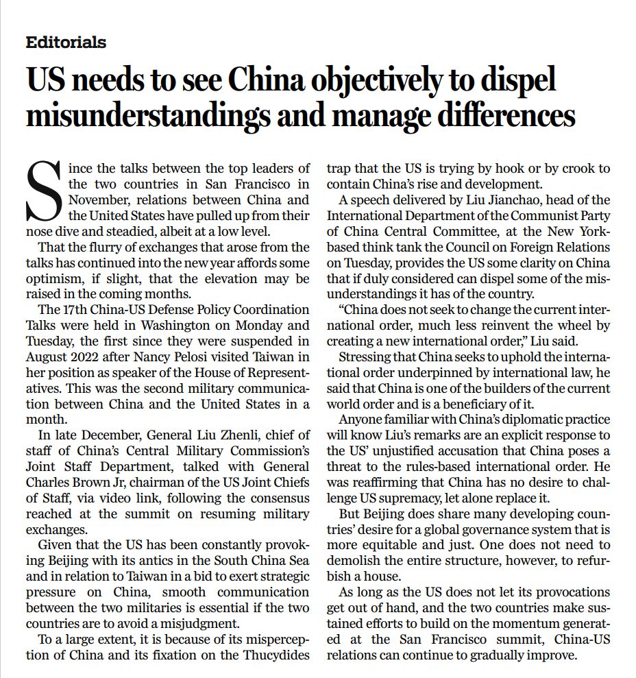 原文標(biāo)題:US needs to see China objectively to dispel misunderstanding and manage difference
