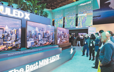 海信攜全球首款8K屏幕發(fā)聲激光電視、全球首款40000+分區(qū)Mini LED電視——110UX電視等全場景顯示技術解決方案亮相展會(見上圖,本報記者李志偉攝)。在110UX電視展品前,很多人駐足觀看,高清畫質不時獲得稱贊。獲得“2024 CES創(chuàng)新獎”的海信車用激光顯示技術,展示了激光顯示在車載領域的潛力。海信國際營銷公司副總裁戴維·戈爾德對記者表示,海信致力于將顯示技術融入生活,為消費者提供超越屏幕的體驗,讓其成為生活的一部分。