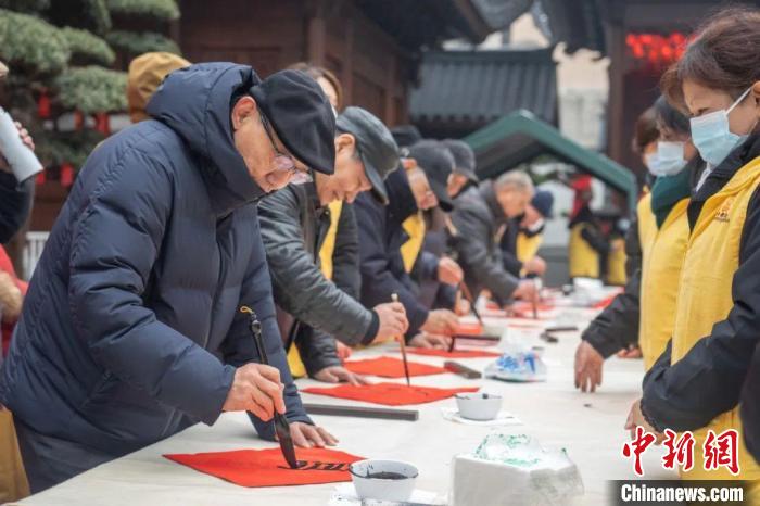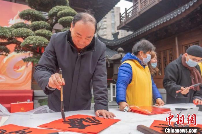 中新網(wǎng)上海1月21日電(記者 范宇斌)21日,“龍興歲時(shí)旺 送福百萬(wàn)家”——2024年玉佛禪寺新春送福活動(dòng)在上海玉佛禪寺啟動(dòng)。上海覺(jué)群書(shū)畫院理事長(zhǎng)、玉佛禪寺方丈覺(jué)醒法師表示,迎新貼“?!弊质莻鹘y(tǒng)的年俗文化,也是中華兒女對(duì)于美好生活、光明未來(lái)的共同期待。
