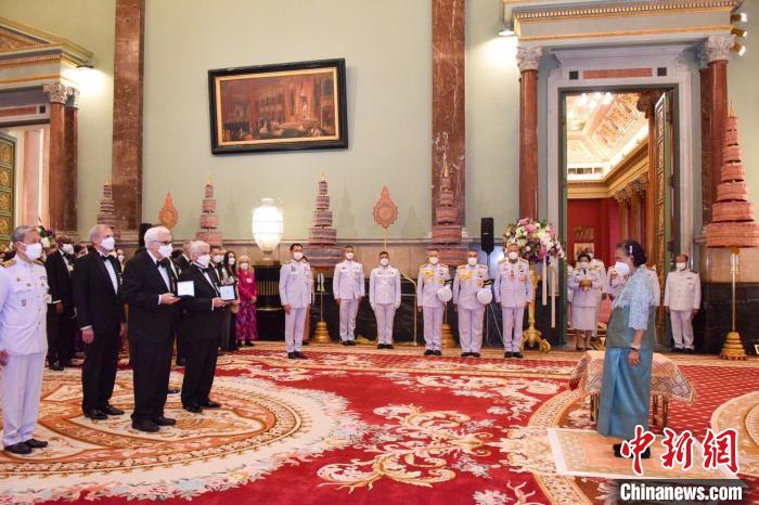 中新網(wǎng)曼谷1月26日電(李映民 陳映玲)當(dāng)?shù)貢r間24日,泰國詩琳通公主在曼谷大皇宮主持了2023年瑪希隆王子獎頒獎典禮。來自美國加州大學(xué)圣地亞哥分校醫(yī)學(xué)院的拿破侖·費拉拉和來自美國科羅拉多州立大學(xué)醫(yī)學(xué)院的巴里·魯馬克獲得2023年瑪希隆王子獎。