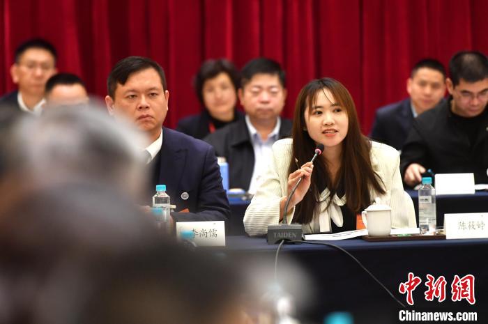 2024年1月22日,在福建省政協(xié)十三屆二次會議上,臺灣青年陳筱婷作為列席人員在小組會議上發(fā)言。中新網(wǎng)記者呂明攝