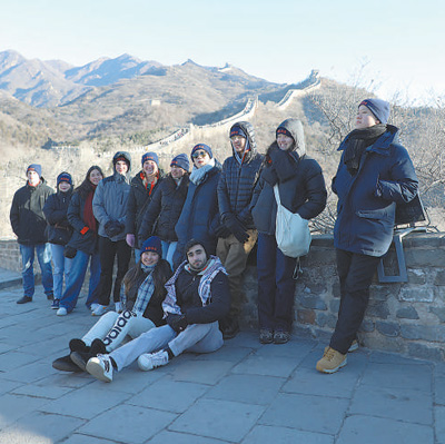 1月7日,弗吉尼亞大學代表團成員在八達嶺長城合影留念。