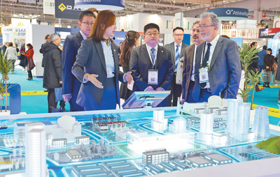 2023年11月在法國(guó)巴黎舉辦的第五屆世界核能工業(yè)博覽會(huì)上,中國(guó)核工業(yè)集團(tuán)工作人員在向法國(guó)原子能委員會(huì)負(fù)責(zé)人介紹展出內(nèi)容。