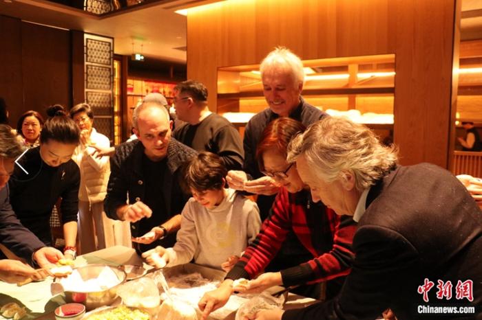 中新網(wǎng)北京2月5日電(黃方)春節(jié)的氛圍日漸濃厚,龍年的序曲已然奏響。2月2日,臘月二十三,“北方小年”,來自瑞士和法國的在華外國友人深度體驗龍年春節(jié),寫“?!弊?,包餃子、品美食……感受中國優(yōu)秀傳統(tǒng)文化的魅力。