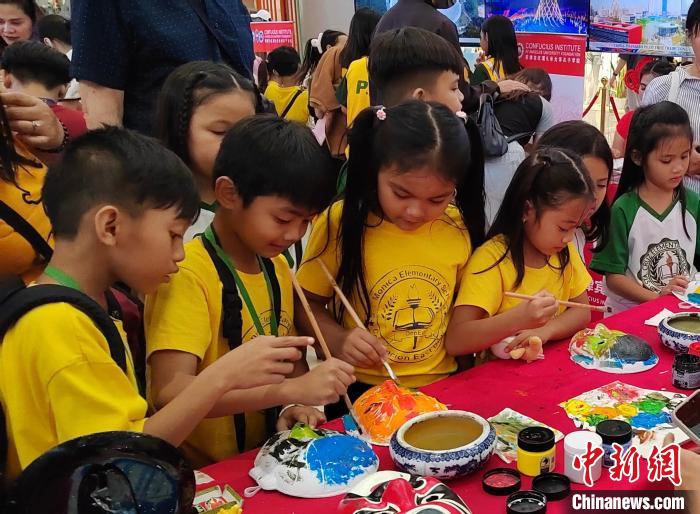 小學生們體驗繪制臉譜。主辦方供圖
