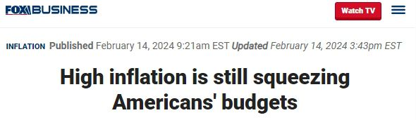 中國日報網(wǎng)2月19日電 綜合美媒報道,1月份美國批發(fā)價格跳漲,表明美聯(lián)儲與通貨膨脹的斗爭或尚未結(jié)束,很可能迫使它推遲降息。多位商界人士也表示,美國的通脹形勢比許多投資者預(yù)期的更具粘性。與此同時,通脹對普通美國人的現(xiàn)實負(fù)面影響一直在持續(xù)。