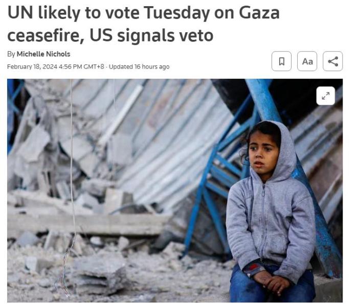 中新網(wǎng)2月19日電 綜合報(bào)道,外交人士表示,聯(lián)合國(guó)安理會(huì)或?qū)⒃诋?dāng)?shù)貢r(shí)間20日就阿爾及利亞提出的加沙人道停火決議進(jìn)行投票,但美國(guó)暗示將在該投票中實(shí)施一票否決。