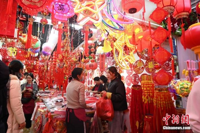 圖為民眾選購(gòu)過(guò)年飾品。 中新社記者 劉文華 攝