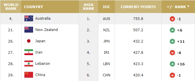 世界排名上,日本男籃排名第26位(亞洲第3位),中國男籃位列第29位(亞洲第6位)。