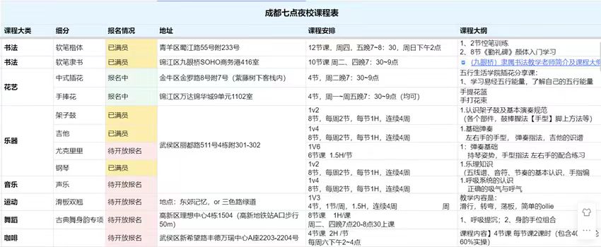 五花八門(mén)的副業(yè)她都嘗試過(guò),目前比較穩(wěn)定、收入占比最大的是去年11月開(kāi)始做的夜校。那段時(shí)間,年輕人上夜校的話(huà)題火爆,她發(fā)現(xiàn)成都還沒(méi)有,于是第一個(gè)在成都建起夜校社群,以組團(tuán)的人數(shù)優(yōu)勢(shì)去找商家談低價(jià)課,類(lèi)似于興趣班的拼多多,目前社區(qū)差不多有5000人。