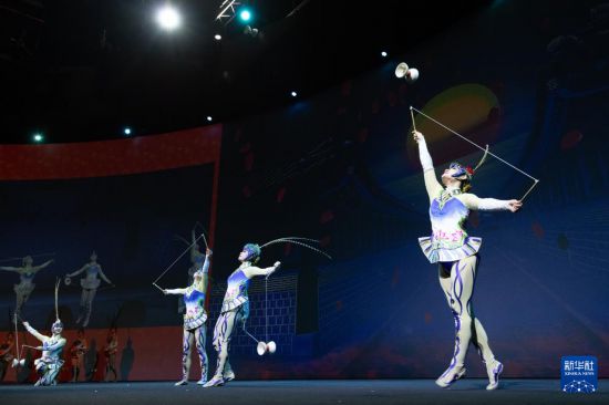2月22日,演員在荷蘭阿姆斯特丹舉行的“四海同春”慰?jī)S訪演活動(dòng)上表演雜技。新華社記者 孟鼎博 攝