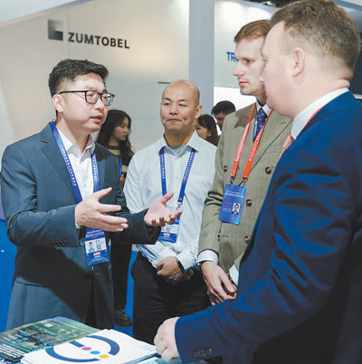 2023年11月,2023金磚國(guó)家新工業(yè)革命展在福建廈門舉辦。圖為中外企業(yè)代表在現(xiàn)場(chǎng)交流。