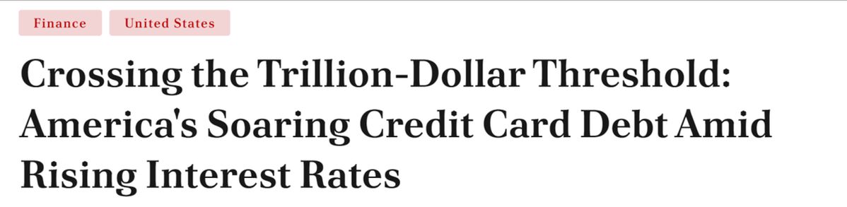 另?yè)?jù)美國(guó)媒體BNN Breaking網(wǎng)站報(bào)道,美國(guó)人的信用卡債務(wù)總額累計(jì)超過了1萬(wàn)億美元,創(chuàng)歷史新高。美聯(lián)儲(chǔ)激進(jìn)的加息措施推動(dòng)信用卡平均利率大幅增加至22%以上,零售信用卡利息率更是接近驚人的29%。