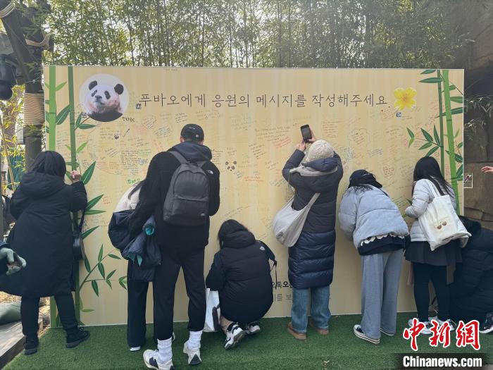 中新社韓國(guó)龍仁3月3日電 題:“謝謝你帶來的歡笑與幸?!薄n國(guó)民眾惜別大熊貓“福寶”