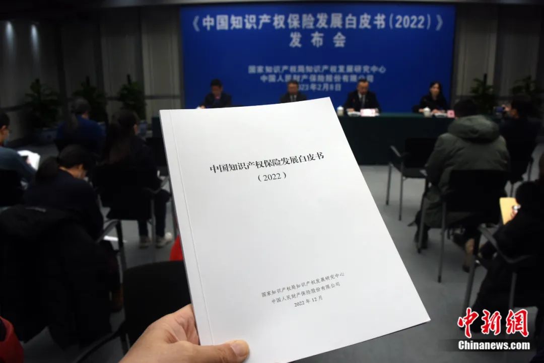 2023年2月8日,中國(guó)國(guó)家知識(shí)產(chǎn)權(quán)局知識(shí)產(chǎn)權(quán)發(fā)展研究中心、中國(guó)人民財(cái)產(chǎn)保險(xiǎn)股份有限公司在北京正式發(fā)布雙方合作完成的業(yè)內(nèi)首份《中國(guó)知識(shí)產(chǎn)權(quán)保險(xiǎn)發(fā)展白皮書(shū)(2022)》。孫自法 攝